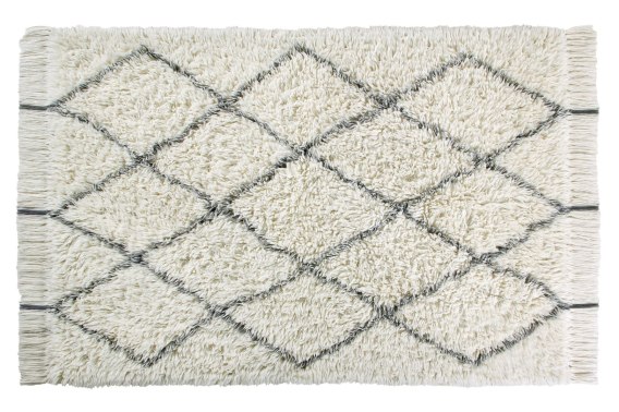 Bereber Soul Small to wełniany dywan do prania w pralce o kształcie prostokątnym. Puszysty i miękki w dotyku. Wykończony frędzlami na krawędziach.