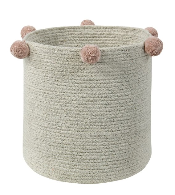 Bawełniane kule na bokach koszyków dodają wesołego i przyjemnego stylu w dekoracji pokoju