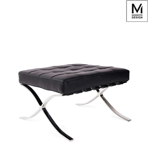MODESTO podnóżek BARCELON czarny - ekoskóra, stal polerowana