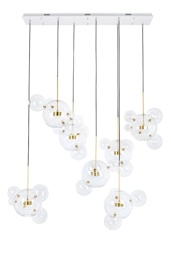 Siedem głównych kul zawieszonych zostało na przewodach, wychodzących z jednej podsufitki.