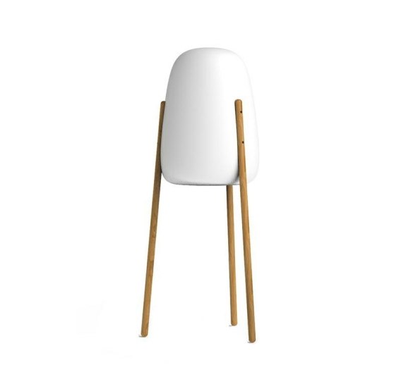 Oryginalna lampa dekoracyjna z drewnianymi nogami dostosowana do warunków wewnętrznych i zewnętrznych.