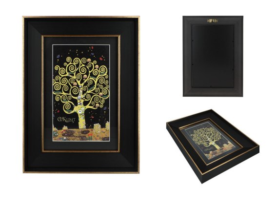 Obraz Drzewo Życia G.Klimta to ikoniczne dzieło, które przedstawia stylizowane, spiralnie ułożone gałęzie drzewa, symbolizujące życie i więzi rodzinne. Intensywne złote i brązowe kolory oraz charakterystyczne ornamenty nadają elegancji i głębi. Drzewo jest centralnym motywem, otoczonym przez abstrakcyjne formy, co podkreśla jego znaczenie jako symbol wzrostu oraz nieprzerwanej cykliczności życia. Obraz bez ramy 20x30cm