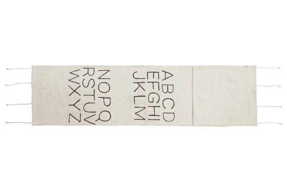 Ręcznie wykonane płótno bawełniane z ręcznie wyszywanymi napisami, zaprojektowane do upiększenia krzesełka dziecięcego SILLITA firmy Gonzalo Milà + Lorena Canals. Ten wzór pasuje do kolekcji dywaników i akcesoriów tekstylnych ABC i zachęca najmłodszych do nauki alfabetu.