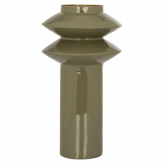 Wyjątkowy wazon wykonany z metalu w głębokim, butelkowym zielonym wykończeniu.