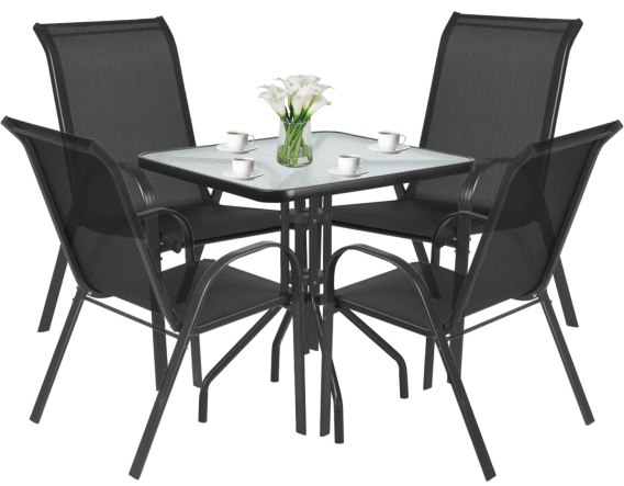 Meble Ogrodowe Stół 70 cm z 4 Krzesłami - Czarne