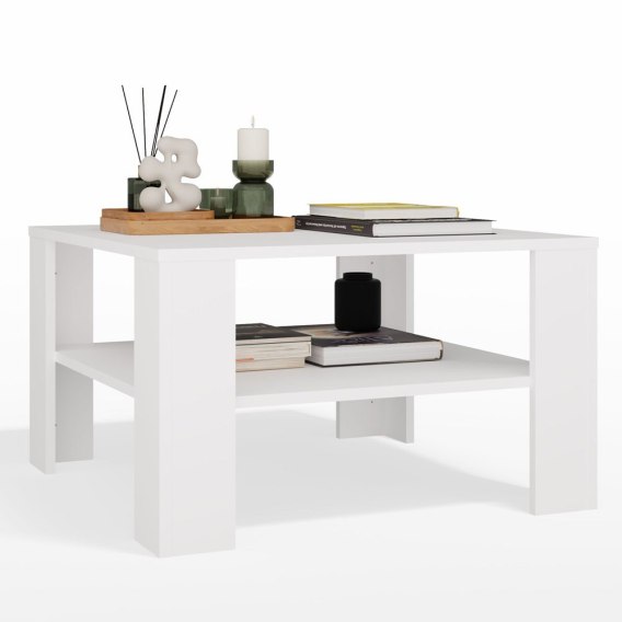Stolik Kawowy Z Półką Pod Blatem SQUARE BIAŁY Ława Do Salonu Pokoju