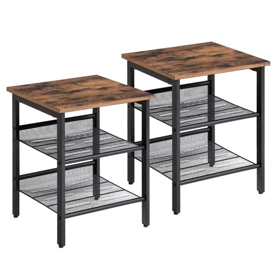 STOLIKI KAWOWE, SZAFKI NOCNE Z 2 PÓŁKAMI RUSTYKALNY BRĄZ, W STYLU LOFT, 2 SZTUKI