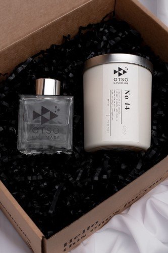 Zestaw prezentowy Świeca i dyfuzor W skład zestawu wchodzą: 1. Świeca sojowa z drewnianym skwierczącym knotem o pojemności szkła 280 ml / czas palenia do 40 - 55 h 2. Dyfuzor zapachowy z białymi patyczkami. / wydajność: do 7-9 tygodni 3. Zapałki Zapakowane w ekologiczne pudełko typu kraft wypełnione papierowymi ozdobnymi wiórkami. Opis zapachu: No 79 - imbirowe nuty w połączeniu z cytrusami od razu oczarują Twoje zmysły. Zwierzęce akordy skóry przeplatają się z drzewnymi nutami dodając zmysłowości. Zapach z nutką orientu i pikantnych przypraw. Bardzo męski i zmysłowy. No 85 - rozkwita egzotycznym kwiatowym akordem, który podkreślają delikatne cytrusowe, pikantne nuty bergamotki i czarnego pieprzu. Bogate serce zapachu mieni się jaśminem, tuberozą, ylang-ylang, goździkami i kwiatami pomarańczy. Na drzewno-bursztynowym tle z nutami paczuli, drewna cedrowego, wetiweru, bursztynu i piżma. Zapach inspirowany perfumami Syberian wellness. No 13 - Zapach inspirowany ekskluzywnymi perfumami Toma Forda, idealny dla miłośników bogatych i nieoczywistych kompozycji. Zmysłowe liście tytoniu doprawione są rozgrzewającymi przyprawami i ciepłą, otulającą nutą słodyczy którą daje wanilia i bursztyn. Kropką nad i jest delikatny akord limonki, który nadaje nieco lekkości całej kompozycji. No 14 - kompozycja o aksamitnym ciepłym, nieco korzenno-drzewnym zapachu z nutami drzewa sandałowego, cedru, wetiweru i paczuli na tle akordów z przypraw, bursztynu, piżma i wanilii. No 18 - zapach lekki i świeży. Dominujące nuty owocowe ananasa i marakuji, które dają słodko kwaśne akordy, uzupełnione są mlecznymi akordami kokosa, na bazie białego piżma. No 08 - akordy użyte do stworzenia tej kompozycji przez koneserów uznawane są jako luksusowe. Ciężkie i wytrawne nuty skóry, mchu dębowego i jesionu podbite są kwiatowymi akordami piwonii, irysu i fiołka. Zaś nuta głowy tworzy zaskakujące połączenie migdałów i owocowych głębokich nut śliwki z brzoskwinią.