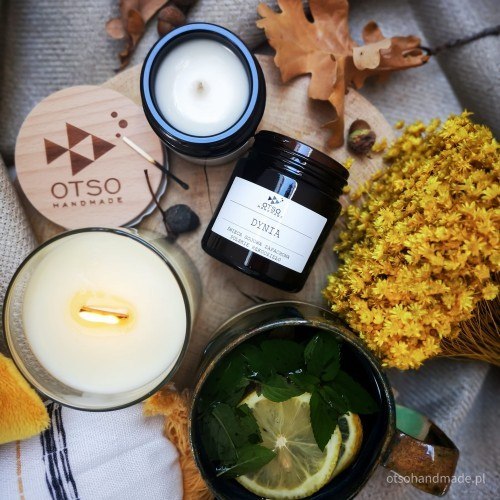 Opis zapachu: ŚWIECA SOJOWA DYNIA - kremowe połączenie dyniowego puree z ciepłymi nutami masła i słodkiego kremu waniliowego. Zapach który otula nas jak ciepły sweter w chłodne dni.   Pojemność świecy 120 ml / czas palenia do 25 h     Co powoduje, że świece sojowe OTSO HANDMADE są wyjątkowe: Sojowe świece zapachowe w całości wytwarzamy ręcznie w Polsce ze 100% naturalnego wosku sojowego, który jest biodegradowalny i przyjazny środowisku Wosk sojowy z którego produkujemy nasze świece nie zawiera ropy naftowej i jej pochodnych, herbicydów, pestycydów oraz toksyn Spala się o 50% wolniej niż parafina, co pozwala dłużej cieszyć się z pięknego zapachu oraz atmosfery jaką tworzy nasza świeca Świece z wosku sojowego emitują o 90% mniej dwutlenku węgla niż świece parafinowe Idealne dla wegan   Kluczem jest prosty skład: specjalnie dobrana kompozycja w pełni wegańskich wosków sojowych bawełniany knot misternie dobrana kompozycja olejków zapachowych   Chcesz dłużej cieszyć się naszą świecą, przeczytaj proszę: Świeca powinna palić się na tyle długo aby górna warstwa wosku roztopiła się od brzegu do brzegu naczynia. Pozwoli to nabrać mocy zapachowi świecy oraz zapobiec tworzenia się tzw. tunelu Przed każdym użyciem świecy należy skrócić knot do ok. 0,5 cm., dzięki temu prostemu zabiegowi płomień będzie palił się równo Nie zostawiaj świecy bez nadzoru, w miejscu dostępnym dla dzieci lub zwierząt, oraz w pobliżu materiałów łatwopalnych