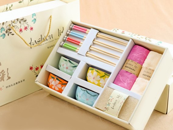 Zestaw do ryżu dla 2-4 osób miseczka+pałeczki+ręczniki i gąbka