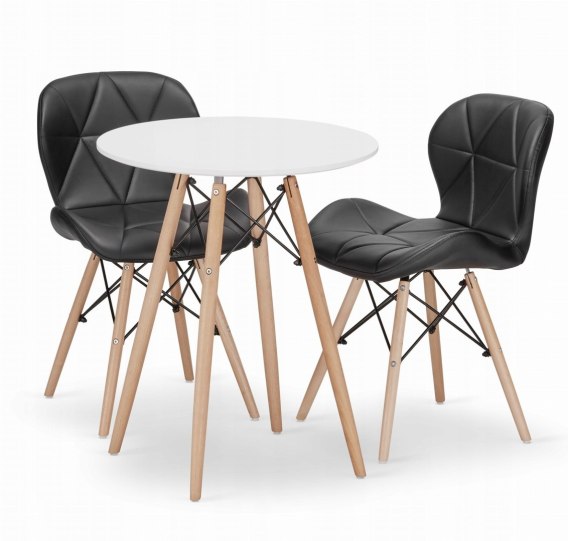 Zestaw stół okrągły TODI 60cm biały + 2 krzesła LAGO czarne: