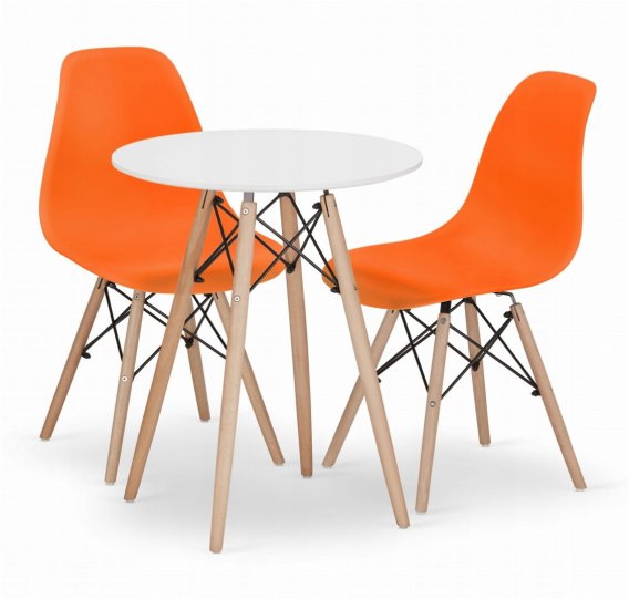 Zestaw stół okrągły TODI 60cm biały + 2 krzesła OSAKA pomarańczowe: