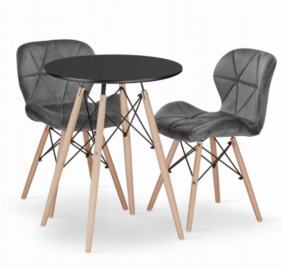 Zestaw stół okrągły TODI 60cm czarny + 2 krzesła LAGO szare