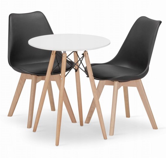 Zestaw stół okrągły TODI 80cm biały + 2 krzesła MARK czarne: