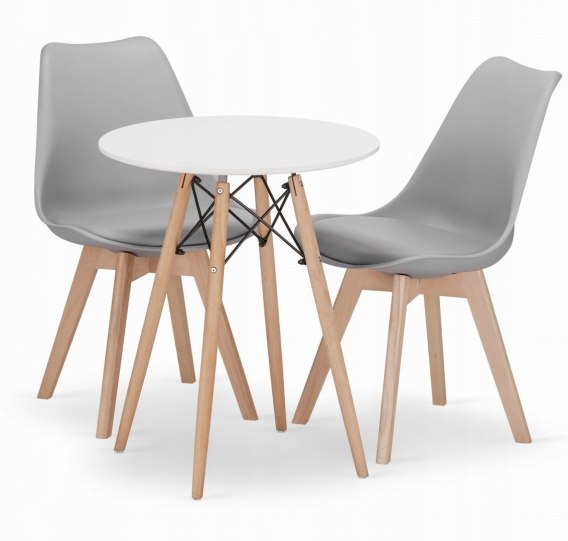 Zestaw stół okrągły TODI 80cm biały + 2 krzesła MARK szare:
