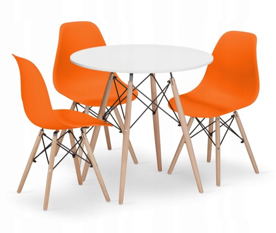 Zestaw stół okrągły TODI 80cm biały + 3 krzesła OSAKA pomarańczowe: