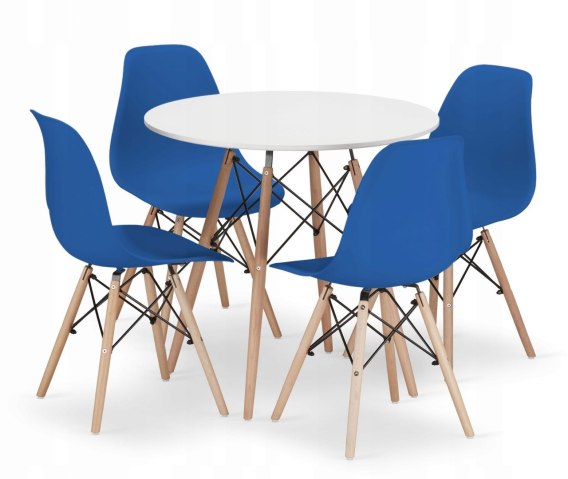 Zestaw stół okrągły TODI 80cm biały + 4 krzesła OSAKA niebieskie: