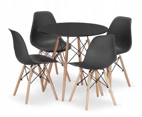 Zestaw stół okrągły TODI 80cm czarny + 4 krzesła OSAKA czarne