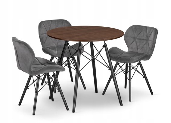 Zestaw stół okrągły TODI 80cm jesion + 3 krzesła LAGO szare