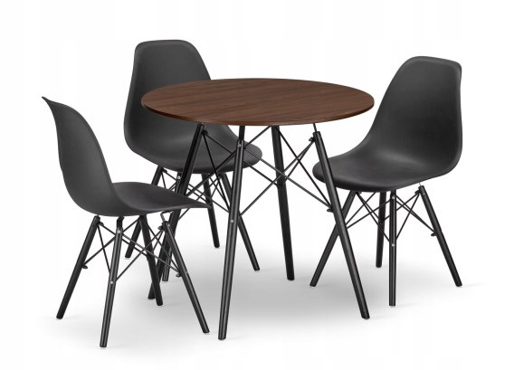 Zestaw stół okrągły TODI 80cm jesion + 3 krzesła OSAKA czarne: